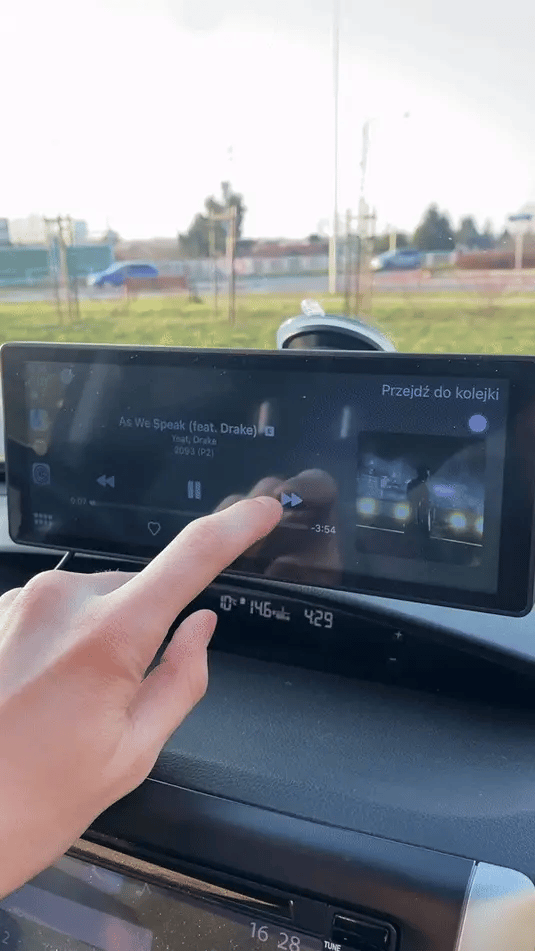 Urządzenie działa bardzo dobrze, CarPlay łączy się szybko. Jedyny minus to to, że ekran trochę odbija światło w słoneczny dzień – ale poza tym wszystko super.